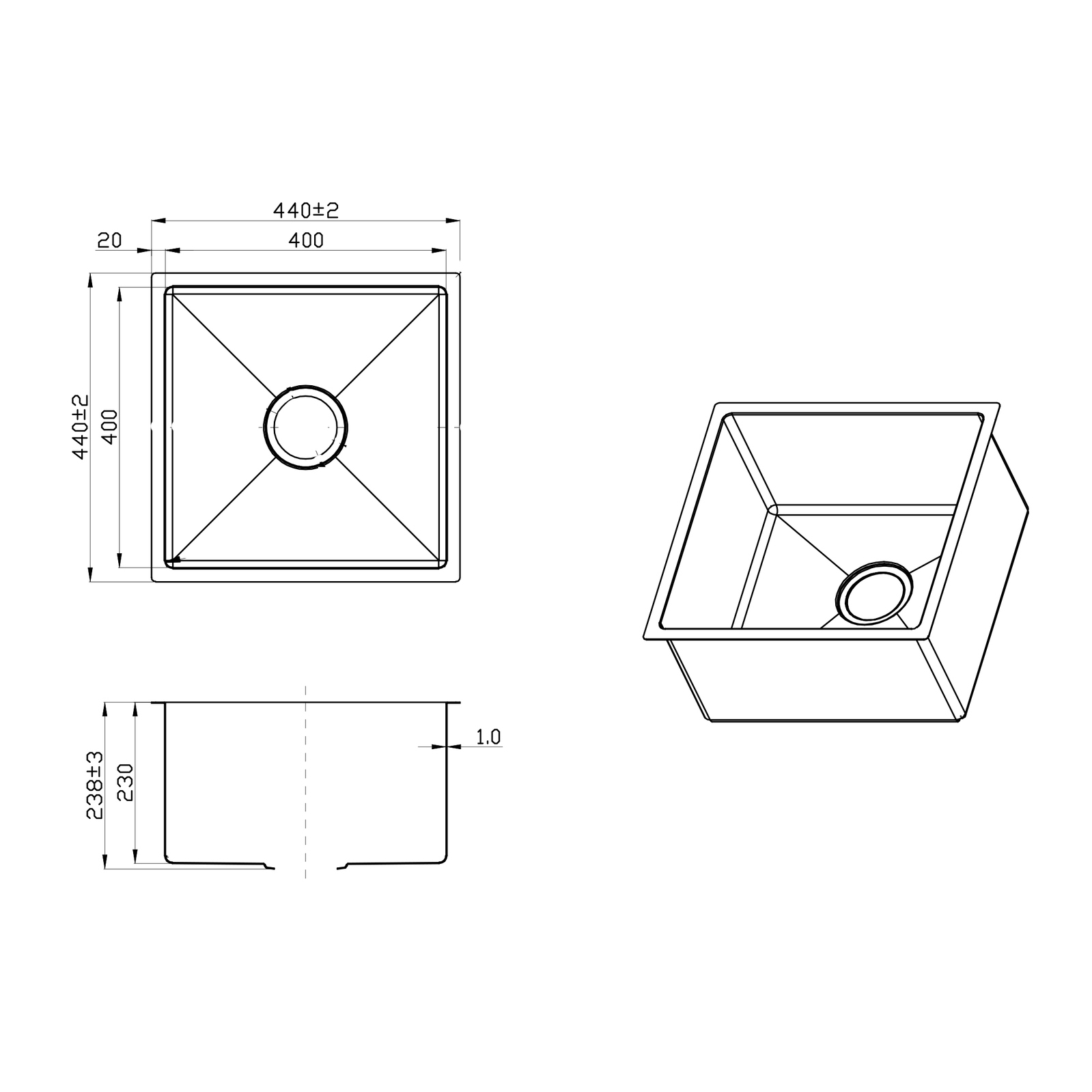 - 1.2mm sink body thickness that adds durability and strength to withstand daily use and heavy loads