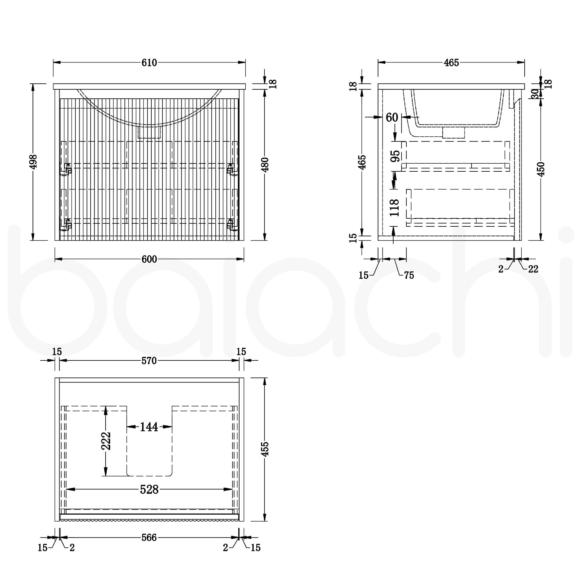 Baiachi Clermont 600 Fluted Timber Bathroom Vanity Wall Hung Cabinet